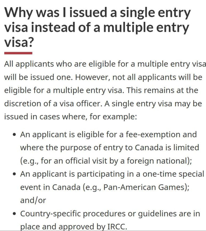 轮到访客签证了! 11月6日,一则加拿大签证新闻在社交平台上炸锅。 消息称,加拿大移民部突然发布一则有关访客签证的重要政策更新:自2024年11月6日起,在处理访客签证申请时,将不再自动发放多次往返签证。取而代之的是,签证官将拥有更大的裁量权,根据具体情况决定签发单次往返或多次往返签证给申请人。 此举意味着,加拿大访客签证将不会以护照有限期为界,以往最长10往返的访客签证将不再是标准操作。 小编在加拿大政府官网查询多次往返访客签证,得到的是以下内容(下图) 提到加拿大访客签证,很多人会觉得这是一个笼统的概念,但其“五花八门”的替代称呼,诸如,陪读签、商务签、探亲签、访客签、旅游签大家一定不陌生,它们都有一个统一的英文名词“Visitor Visa”,即访客签证。 过去这些年,随着加拿大逐步对更多国家开放十年多次往返签证政策,除了特定情况外,大多数访客签证默认为有效期内不限次数往返。 但其实更早前,加拿大的旅游签证主要以单次入境为主,只有少数国家的公民能够享受多次往返的便利。 其实不难理解,贯穿整个2024年的加拿大移民政策均以限制临时居民数量为主线。
