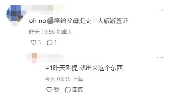还有人才给父母递交了旅游签证,就遭遇了新政。