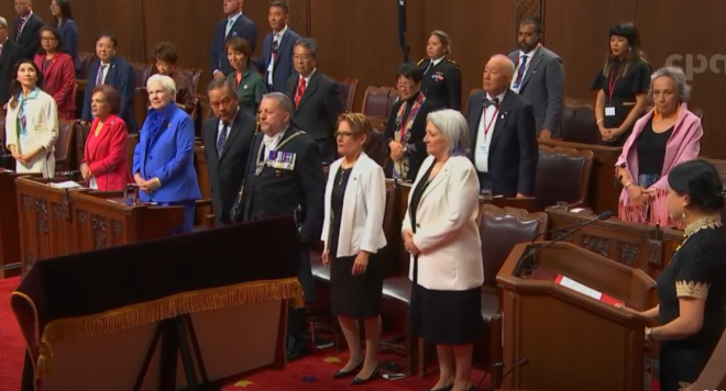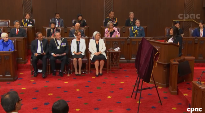 纪念活动在参议院议政厅举行。加拿大总督西蒙(Mary Simon)、联邦国际贸易部长伍凤仪(Mary Ng)等出席。