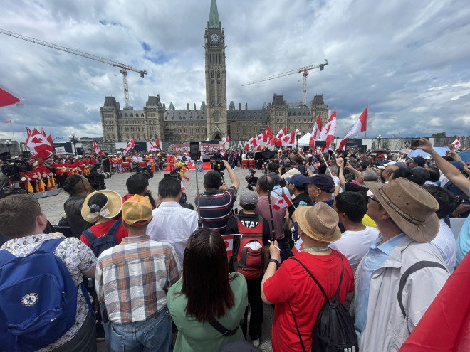 6月24日,《排华法案》百年回顾活动组委会在渥太华国会山庄举行集会。和平表达广大华人争取合法权益、反对制裁,并鼓励加拿大华人通过捍卫自己的权利来对抗现代的排外现象。