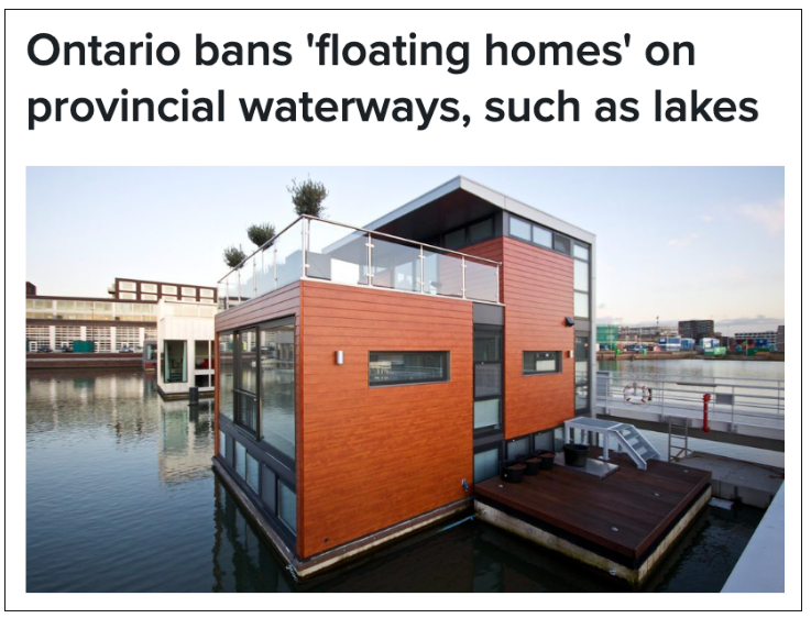 从7月1日起,安省计划禁止“浮动房屋”(floating home)在省级水道上过夜停靠。(回顾:7月1日起,安省禁止此类“房屋”在湖边过夜停靠)