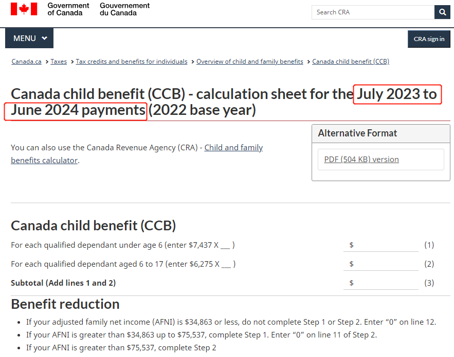 每年七月,这笔福利金都会根据您上一年调整后的家庭净收入重新计算。