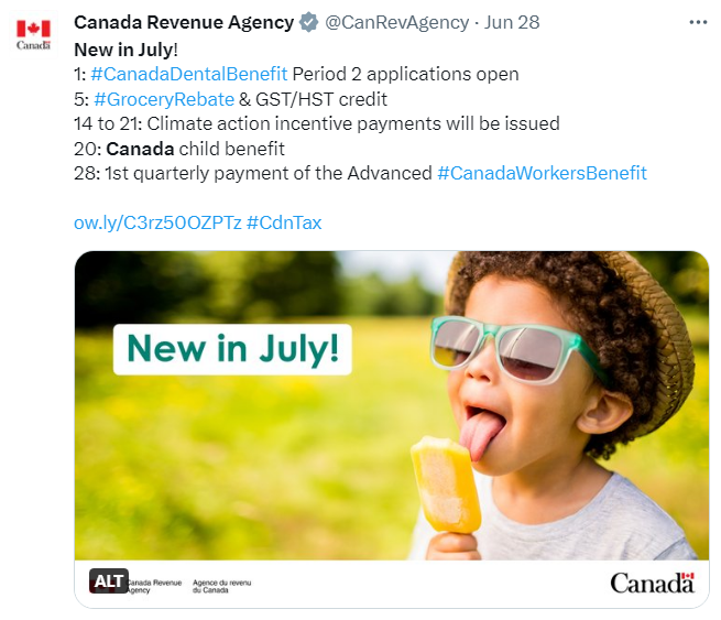 加拿大税务局(Canada Revenue Agency,简称CRA),宣布了从7月1日起开始的5大福利。