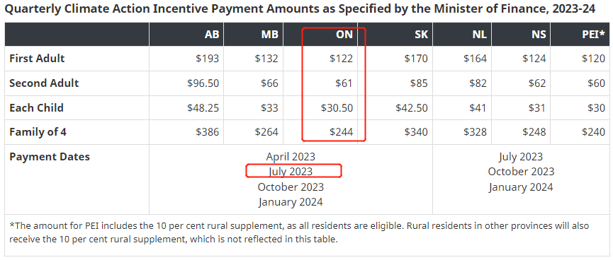 加拿大联邦政府发出另一轮气候行动奖励金,也称为加拿大碳税补贴(CAIP)主要为帮助大家抵消油价等碳税相关开支增长。这笔钱一年4次分发,下一笔就在7月14日至7月21日期间发放,加拿大各省金额不同。