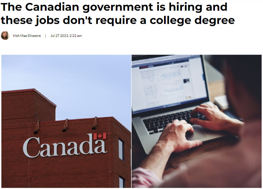 加拿大政府高薪招聘啦!无需大学学位,加拿大各地均有职位