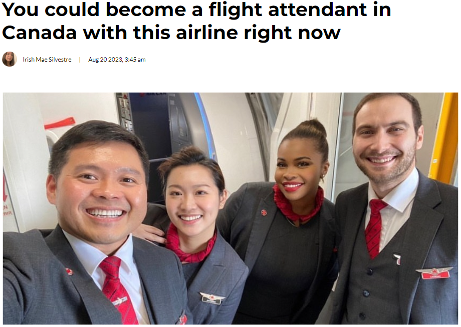 根据加拿大航空公司的招聘网站,该公司目前正在多伦多、温哥华招聘空乘,而你有可能成为他们的新成员。