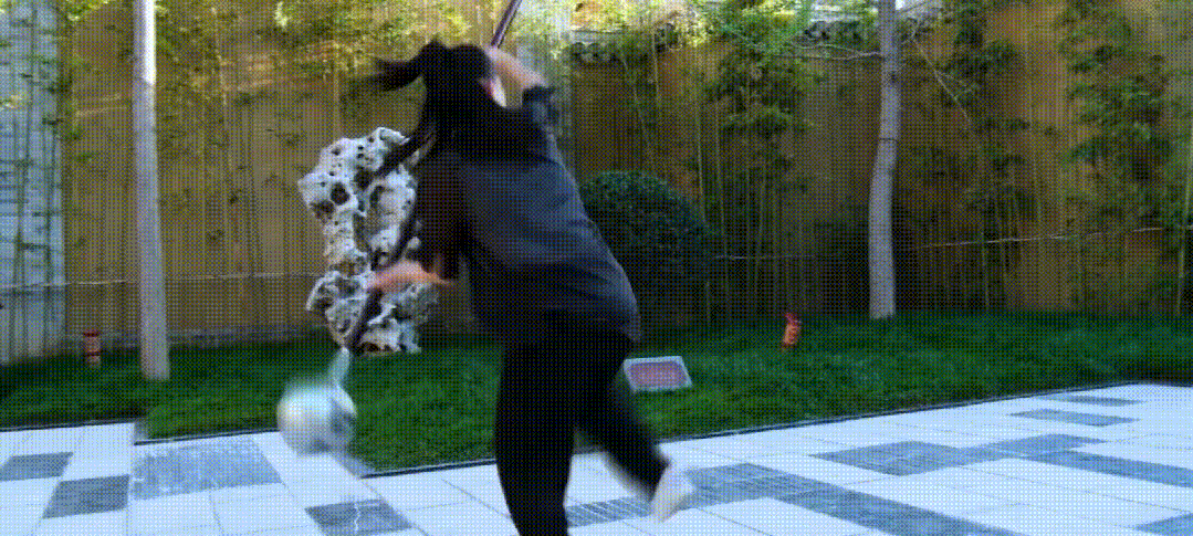 凭借超强的臂力,连杆带人,飞速旋转360°,