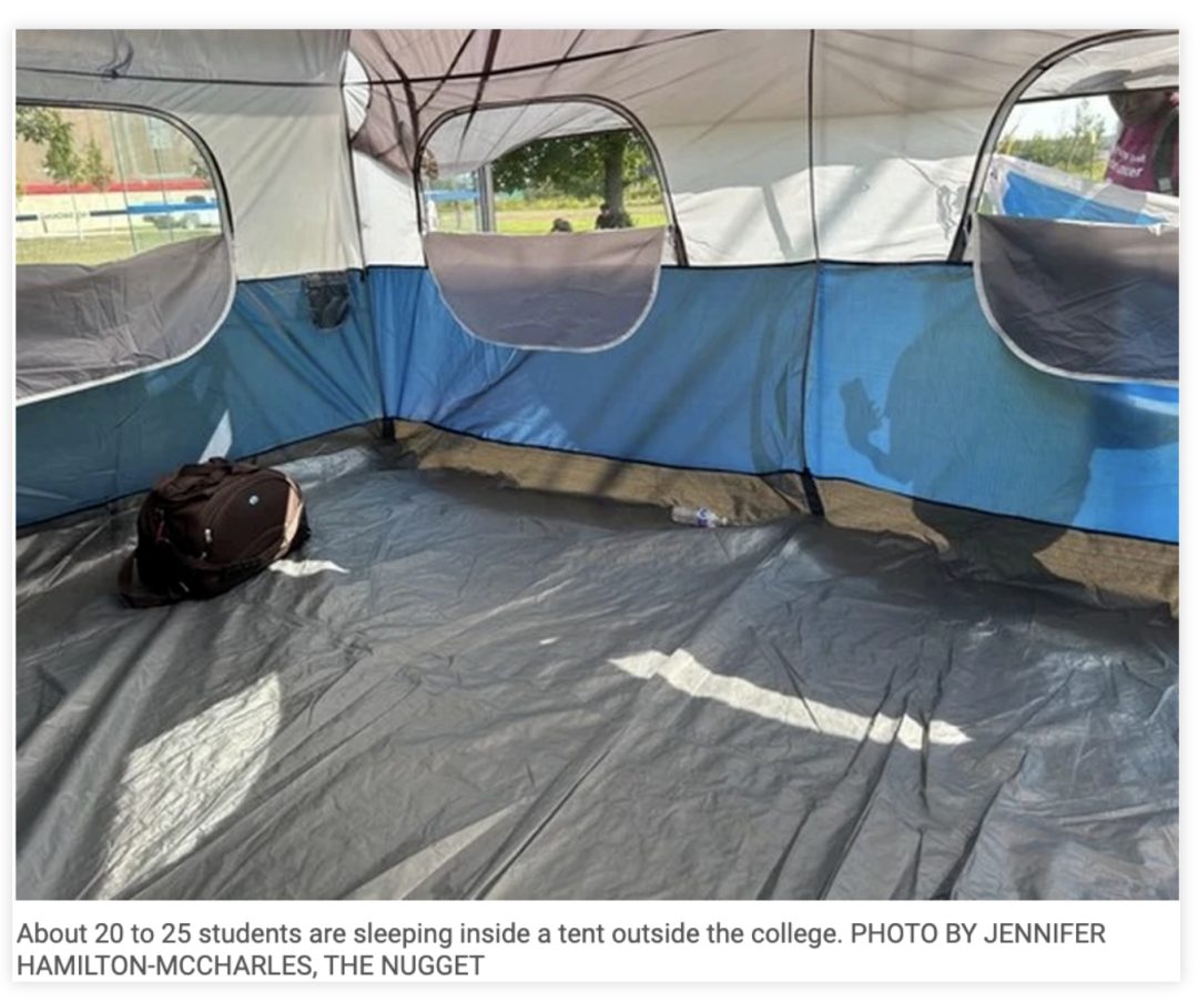 最近不少英文媒体都爆出,很多留学生因为高涨的生活成本,被迫去食品银行领取免费食物,还有的留学生没地方住,只能睡大街,住帐篷。