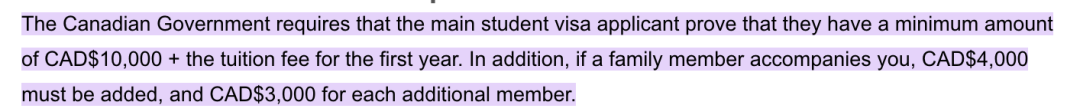 申请学习签证时,申请人必须出示财力证明(proof of financial support),必须证明他们能够今后可以在加拿大养活自己。