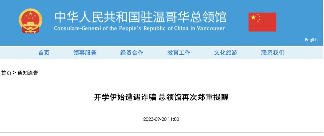 开学伊始遭遇诈骗 总领馆再次郑重提醒