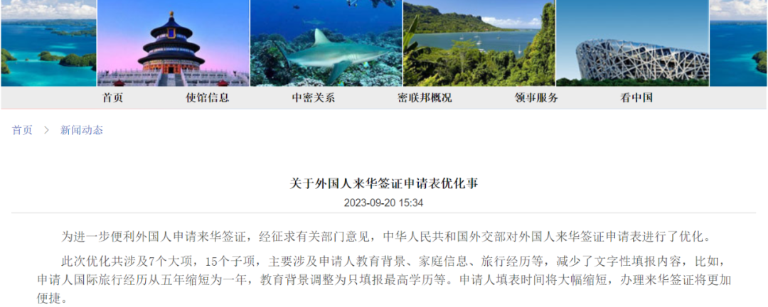 除了出入境申报变简单了,赴华签证申请表现在也进行了优化。