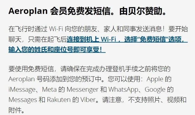 需要注意的是,加航官网指出如需使用“免费发送信息”服务,务必在办理登机手续之前,在预订信息中添加Aeroplan会员号。