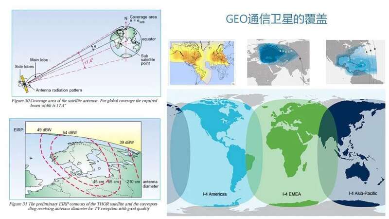 理论上,一颗地球同步轨道的全向投射范围可以覆盖42%的地球表面,半径9000公里,东西跨越经度最大162.6度,纬度覆盖南北纬81.3度之内,几乎是半个地球。