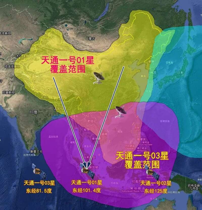 但是天通卫星采用了组合波束技术,加强了对中国及周边地区的照射效果。因此在重点照顾区域外应该没有信号。