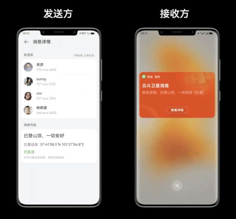 Mate50系列,支持了北斗短报文,可以单向发送消息。