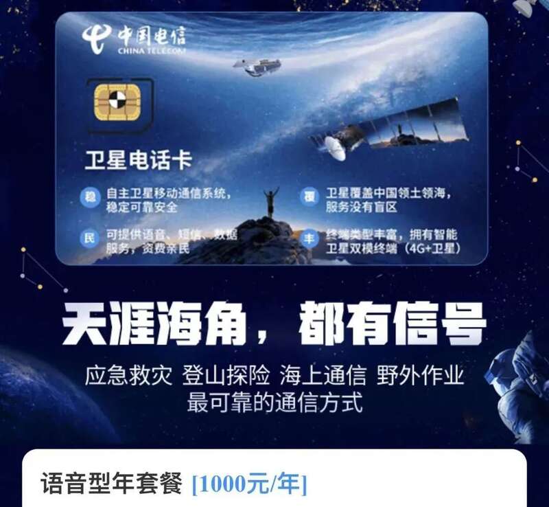 为了适应支持华为Mate60 Pro 和 Pro+ 卫星电话功能的手机用户,中国电信也推出了一项新的低门槛普及套餐。