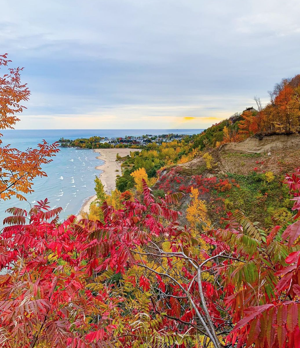 Scarborough Bluffs是一个一年四季都适合去游玩的地方。春天去踏青,夏天去湖边,秋天看枫叶,就算是到了冬天还可以看上冻的安大略湖。站在悬崖顶欣赏枫叶别有一番景致~就是周末比较不好停车。
