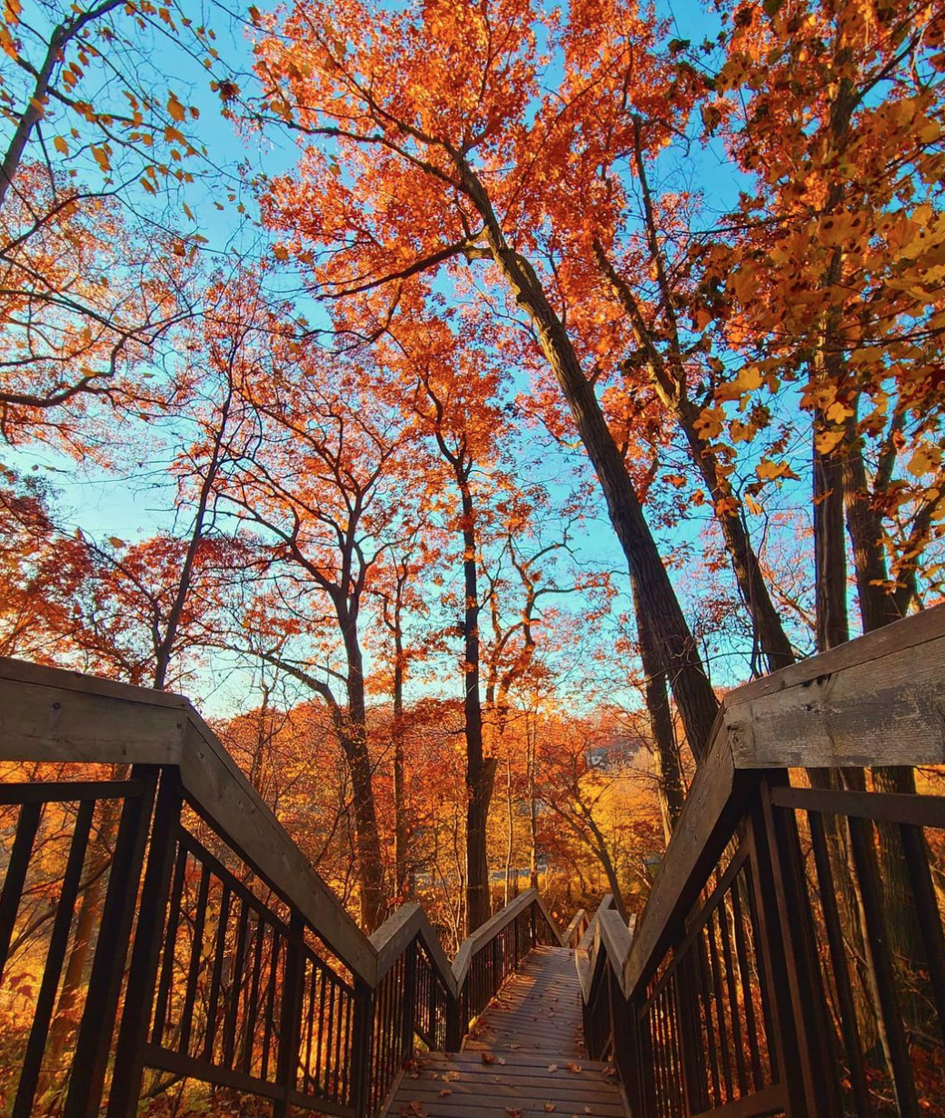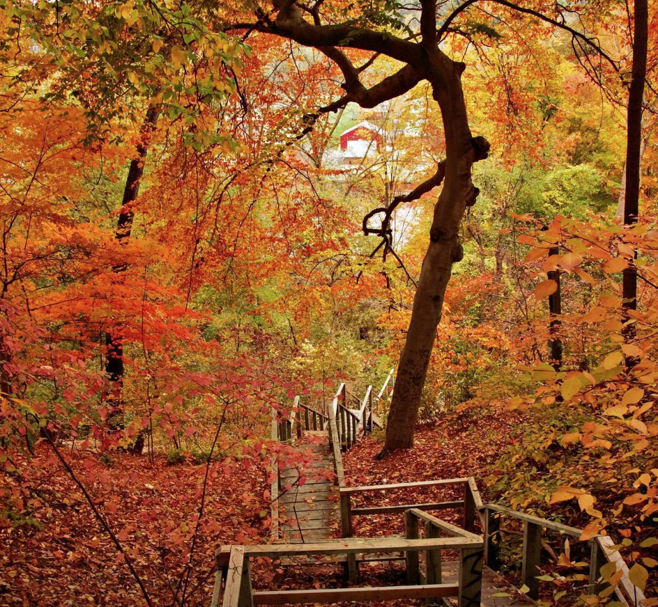 这个峡谷最大特色是广阔的木质走廊和楼梯,降低了徒步的难度,使得游客能够集中注意力欣赏茂盛的植被、成熟的枫叶和红色的橡树。走在林间走廊,九曲十八弯,深秋沁凉的空气,感觉身体都被洗涤了一番。