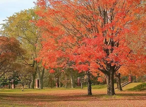 围着公园四周有多条适合骑行和步行的路径,路边枫树、橡树林立,深秋时分,枫叶浸染,十分壮观。