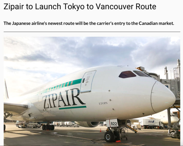 温哥华机场管理局(Vancouver Airport Authority)最新表态:预计从2024年3月开始,日本航空旗下的经济型品牌Zipair将正式开通温哥华-东京(成田机场)往返航线,且往返平均票价仅需900加元(大约4700人民币)。