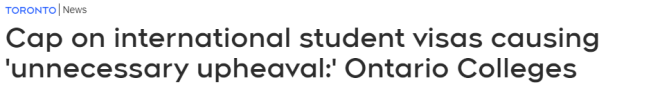 https://toronto.ctvnews.ca/total-chaos-ontario-colleges-say-cap-on-international-student-visas-is-causing-upheaval-1.6741859#:~:text='Total%20chaos%3A'%20Ontario%20Colleges,student%20visas%20is%20causing%20upheaval&text=Ottawa's%20decision%20this%20month%20to,education%2C%20Ontario's%20public%20colleges%20say. |