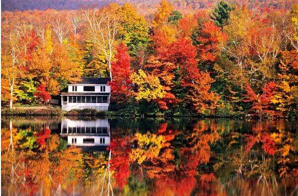当这些如马赛克般红的、黄的、橘红的、金黄的色彩掩映在碧水蓝天之间,你会惊叹于造物主的巧夺天工。美景如画,说的应该就是彼时的加拿大。