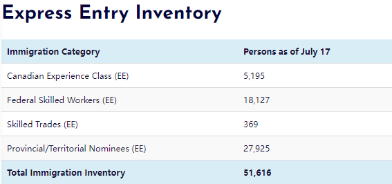 7月17日,共有51,616名“EE移民”申请人正在等待结果,与3月15日的88,903名相比大幅减少。