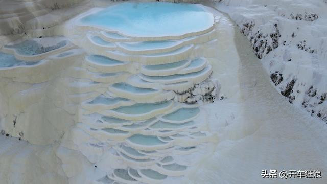 接着我们便远远看到一层层的白色“梯田”,酷似“土耳其的棉花堡”,这里便是被称为“仙人遗田”的中国最大的华泉台地白水台