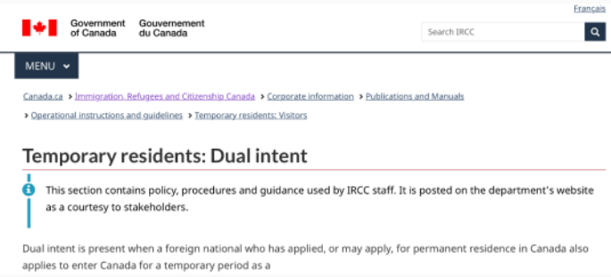 2023年4月5日,加拿大移民局(IRCC)在官网发布了关于“双重意图”(Dual intent)临时居民签证(也就是大家常说的旅游签证)的审核标准。
